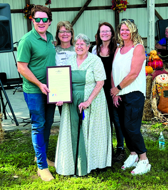 State Representative Dane Diehl presented Beverly Sullins with a plaque honoring her for her efforts in the Papinville Community over the years including getting the bridge that was built in 1884 on the National Historical Registry. Our family is very proud of her. It was great to see her recognized. With Beverly are her daughters, Emily Craft, Rita McGuire and Hope Ashby.