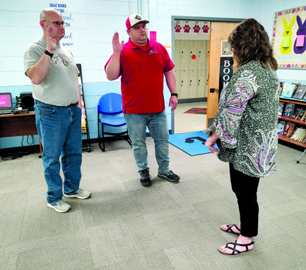 Craig Carpenter and RJ Kinnett won reelection earlier this month and were sworn in at the April 13 meeting. Member Mark Burley also won reelection but was out of town for the Thursday meeting.