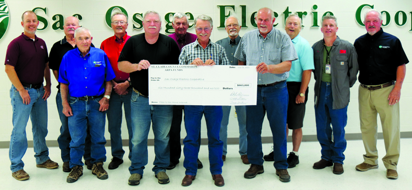 St. Clair County Commissioners approved Sac Osage Electric Cooperatives application for the American Rescue Plan Act (ARPA) funding to support their fiber to the home broadband Internet initiative. Robert Salmon – Presiding Commissioner, Leroy Strope – North District Commissioner, and Randy Smith South District Commissioner presented a check for $663,000 to the board of directors of Sac Osage Electric Cooperative.