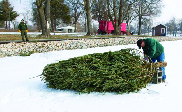 MDC fisheries staff collect discarded natural trees to submerge in area lakes and ponds. Once submerged, these trees offer habitat for a variety of native fish species.