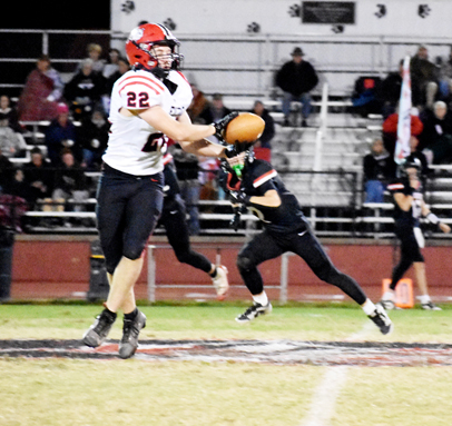 Koal Caldwell hauls in a long pass for a first down during the Bulldog’s final game of the season.